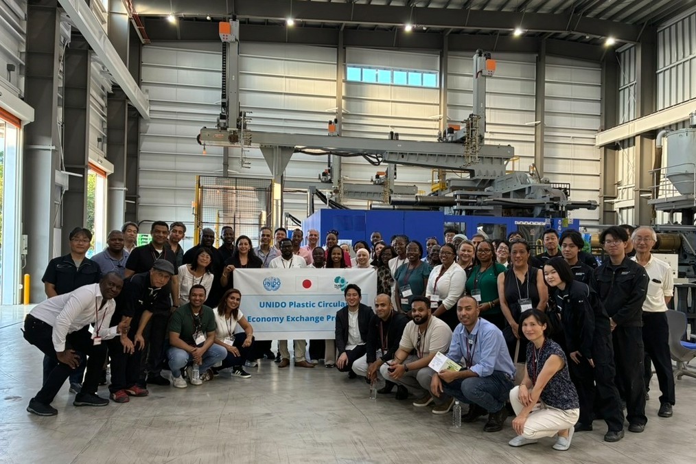 2025年8月26日、国際連合工業開発機関(UNIDO)が主催する 「TICAD9 学習・交流プログラム(Learning and Exchange Program on Plastic Circular Economy)」 の一環として、アフリカ8か国(エジプト、ケニア、モロッコ、ナイジェリア、セネガル、南アフリカ、タンザニア、ザンビア)からの政府関係者・業界団体・民間企業・国際機関関係者 約50名の使節団が、マテリアルワークスを訪問されました。